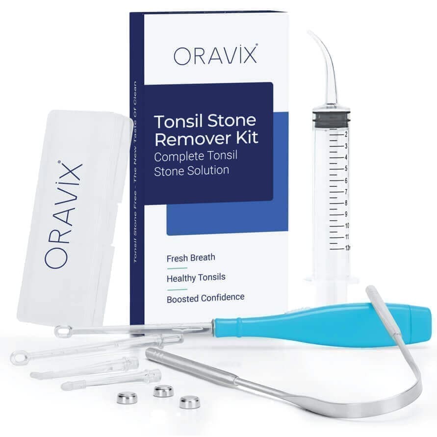 Met de Amandelsteen Verwijderset van Oravix maak je eenvoudig korte metten met die vervelende amandelsteentjes. In deze set zit niet alleen alles wat je nodig hebt om bestaande amandelstenen te verwijderen, maar ook een tongschraper om toekomstige amandelstenen te voorkomen. Weet je niet zeker waar je moet beginnen? Geen zorgen. Elke set bevat instructies waarin wordt uitgelegd hoe je je keelamandelen schoon kunt houden. Zo voorkom je die vervelende symptomen van amandelstenen en blijft je adem altijd fris!